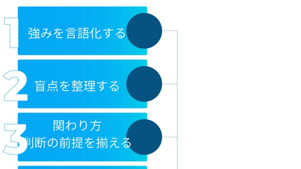 強みと盲点を整理し、関わり方の前提を揃え直すことです。